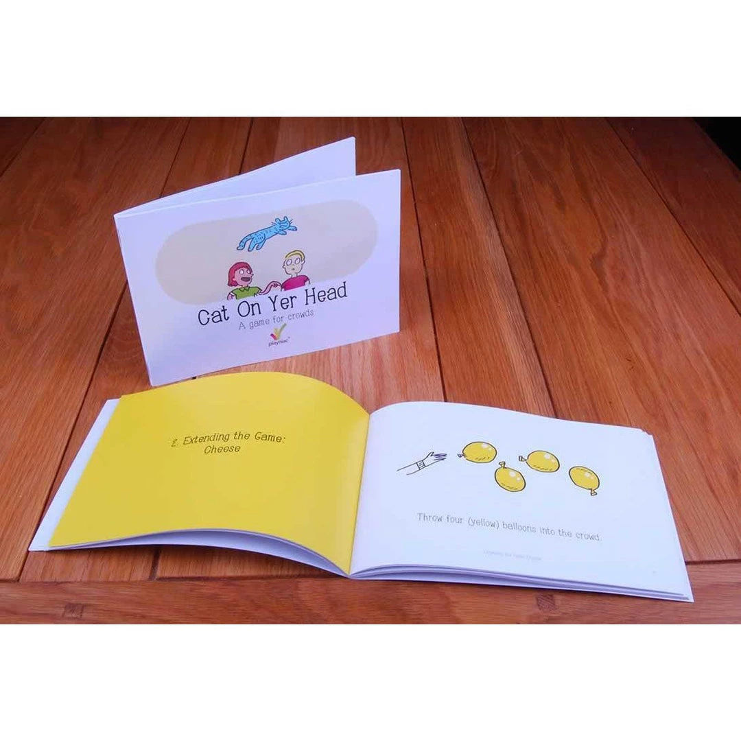 Is it a book? Is it a game? Award-winning crowd game Cat On Yer Head is now both. This game for 15 to 1,000 people has been played at parties, festivals and events all around the world. The book, already an IndieCade Official Select 2014, lets anyone run it wherever they can get a few friends together. Cat On Yer Head starts with a few simple rules that can then be modified while it is played. An imaginary cat, passed between players, chases an imaginary mouse who must escape it and eat cheese; or hide down a mouse hole; or turn into a cat-eating monster – or whatever the players invent. Because that’s the aim of the game: to build upon its basic rules, redesign it on the fly and make it sillier while you play.