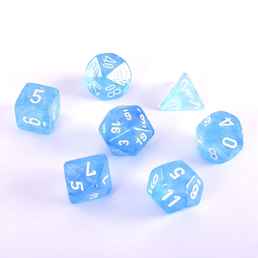 Chessex Borealis Sky Blue/White Polyhedral 7 Die Set Dice