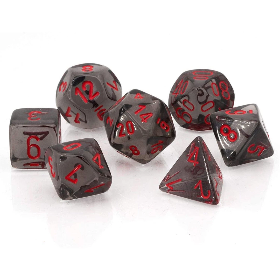 Be the first to review “Chessex Tabletop Translucent Poly Smoke/Red 7 Die Set” Cancel reply