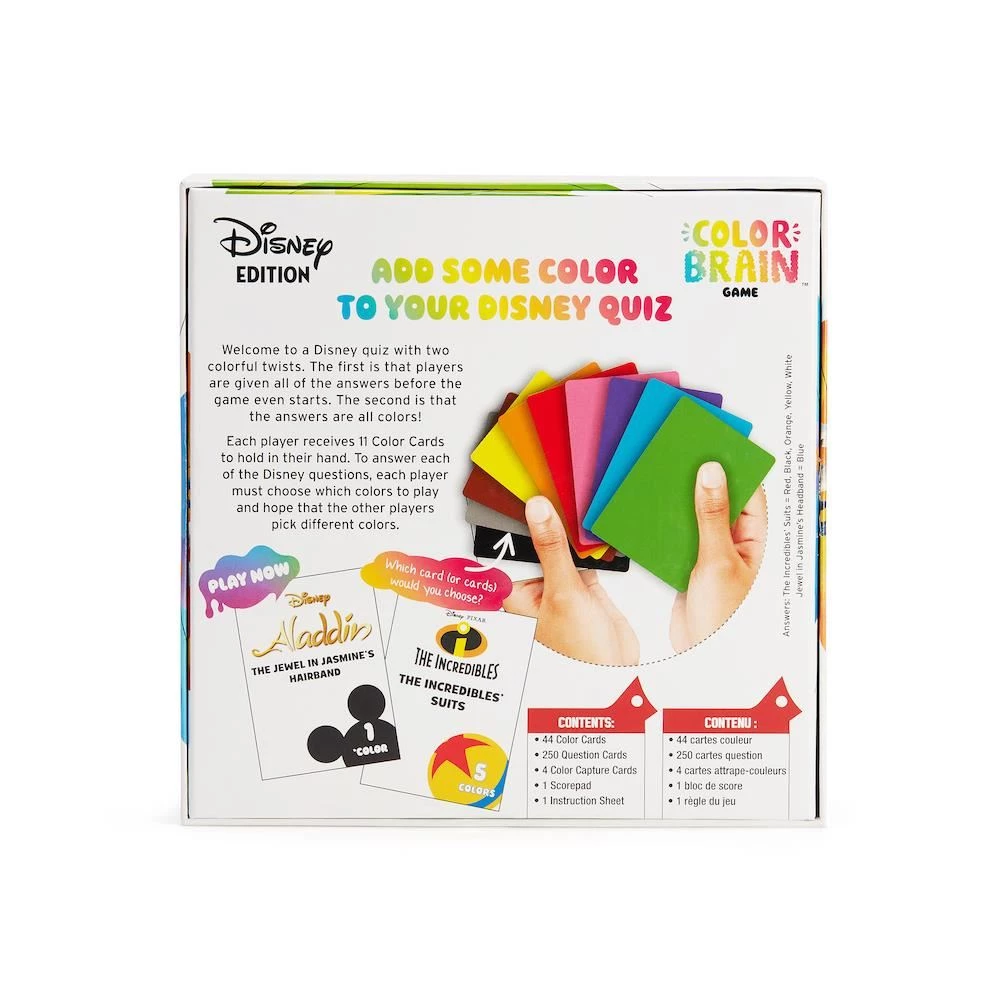 Add some colour to your Disney quiz! Welcome to a Disney quiz with two colourful twists. The first is that we’ve given you all the answers before you start. The second is that they’re all colours! Just like ordinary Colourbrain, each player starts with 11 Colour Cards in their hand. Each round, they must decide which colour (or colours) they want to use as their answer to one of 250 different Disney questions. Get the right colours, collect the points and live happily ever after. Content: 298 cards, 1 score pad