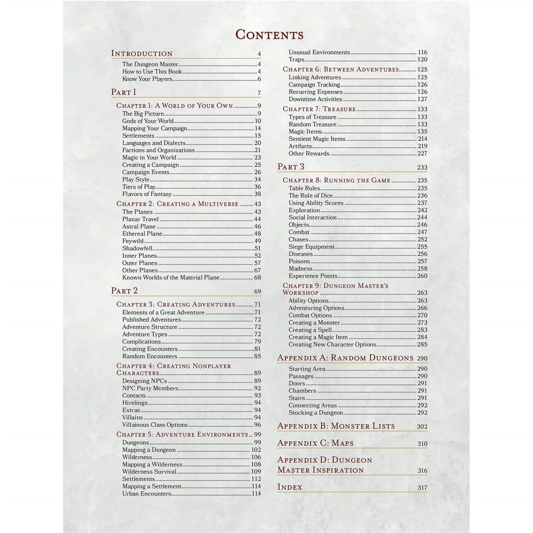 Weave legendary stories in the world’s greatest roleplaying game. All you need to run a Dungeons & Dragons game is your imagination, some dice, and this book. The Dungeon Master’s Guide teaches you how to how to run D&D adventures for your players– how to invent monsters for them to fight, mysteries for them to solve, and fantasy worlds for them to explore. “[The Dungeon Master’s Guide is] the one book to rule them all, the most comprehensive and powerful set of resources needed to run a game of D&D. . .” –Charlie Hall, Polygon.com “D&D acolytes are everywhere…Tech workers from Silicon Valley to Brooklyn have long-running campaigns, and the showrunners and the novelist behind ‘Game of Thrones’ have all been Dungeon Masters.”–Neima Jahromi, The New Yorker – The Dungeon Master’s Guide is one of the three main Dungeons & Dragons books, along with the Player’s Handbook and Monster Manual. It’s a reference used by the Dungeon Master (the game’s narrator) to create adventures–to run Dungeons & Dragons games and fill them with characters and stories. – The Dungeon Master’s Guide (DMG) is full of tools to help you immerse players in the game. What’s the demon lord’s secret weakness? Are the orcish invaders a criminal enterprise, or traitorous allies? Dozens of tables throughout the book help inspire your decisions and keep the game flowing smoothly. – In the Dungeon Master’s Guide (DMG), even the tables tell tales. A legendary sword takes five decades to craft. Who created it, and why? A tavern-crawling gnome has an eye twitch. How did she get it, and when? In every detail is an architecture for narrative–and the Dungeon Master’s Guide has all the tools you need to flesh it out with ease. – In Dungeons & Dragons, you and your friends coauthor your own legend. Guided by a Dungeon Master, you create characters and play their roles in a story, rolling dice and navigating maps as you unfold a tale as limitless as your imagination. – Dungeons & Dragons is the world’s greatest roleplaying game. Created in 1974, D&D transformed gaming culture by blending traditional fantasy with miniatures and wargaming.