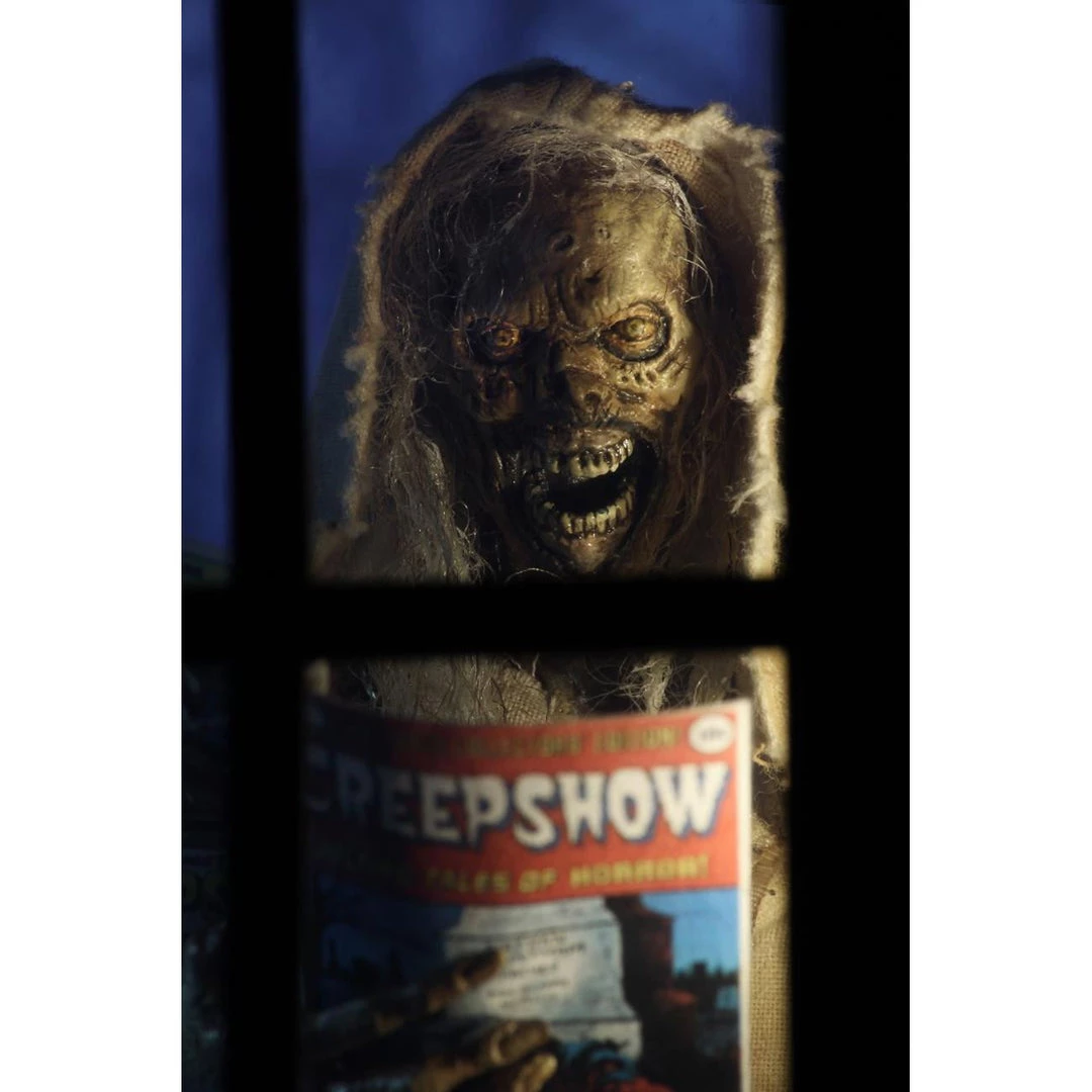 The iconic horror franchise is back for new tales of terror! Shudder’s new Creepshow TV series expands on the rich legacy of horror built by the original movies, and breathes new unlife into its mascot, The Creep. Now in action figure form, The Creep stands over 7 inches tall and is fully posable, with over 25 points of articulation. The figure features synthetic hair and a fabric robe with wire armature so you can give it just the right positioning. The Creep also comes with lantern, skull and Creepshow comic book accessories. Window box packaging.