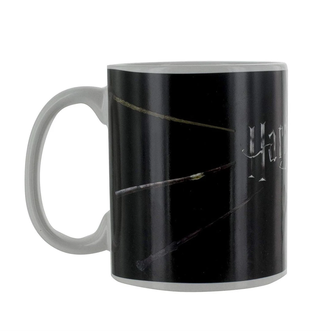 Pour your favourite hot beverage into the Harry Potter Magic Wand Heat Change Mug and watch as it magically transforms before your eyes. When cold, this standard sized mug is dark. However, as soon as this mug is warm the wands of Harry, Hermione and Ron spark into action firing bolts of magic, illuminating the official Harry Potter logo. This is the perfect gift for lovers of the Harry Potter franchise and makes a great accompaniment to your next tea-break. The Harry Potter Magic Wand Heat Change Mug is great for use at home, at work or at school. Capacity: Standard Size Size: 8 x 8 x 12 cm