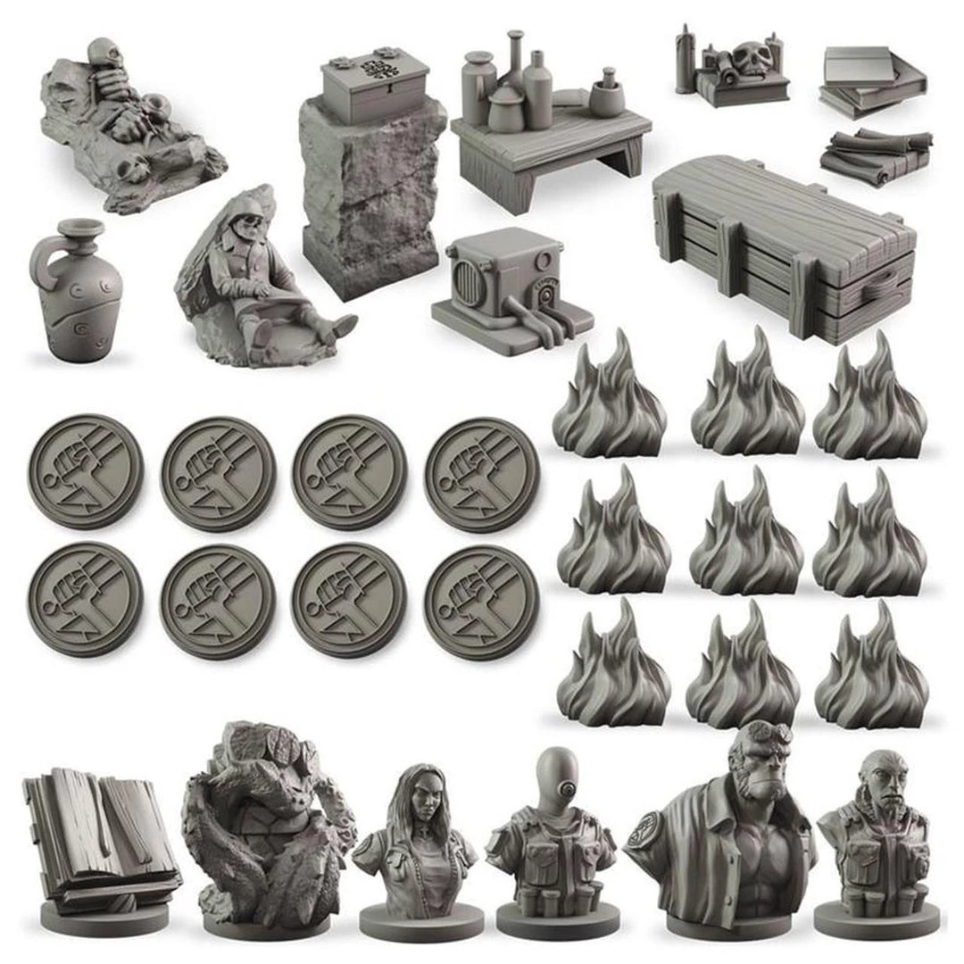 This set includes Points of Interest and 3D counters to enhance your games of Hellboy: The Board game. Contains: 4 Target Priority Busts 9 Transparent Orange Flame Markers Impending Doom Token Information Gathered Token 8 Investigation Tokens 10 Points of Interest
