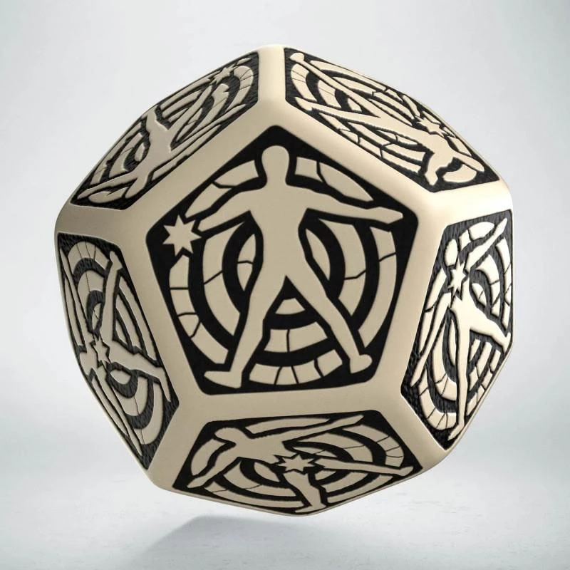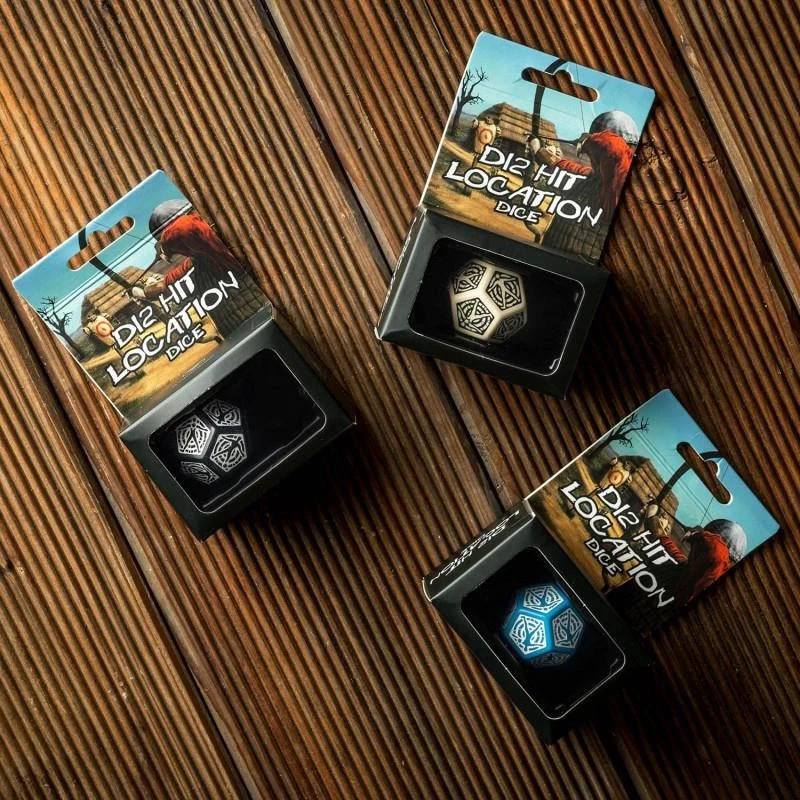 Hit Location Die A vivid description of the plot is extremely important in Role Playing Games. Only the direct blows count during fights and it would be nice to know where did you hit and how badly. Otherwise, there is no fun. Q WORKSHOP found a solution for all the RPG systems that do not specify hit locations in their rules. We present the newest D12 Hit Location dice. Smash or cripple your enemy with one precise roll! Have satisfaction that your hero doesn’t only reach locations below knees of the opponents bigger than him. Take this giant die, made with high-quality plastic, destined to rolling and throwing on the table in dramatic emphases. Then you can tell epic stories on how perfectly your hero attacked the weak spot of your enemy armor. No helmet, so no more head! We decided to not put any texts on die faces. Even Ancient Egyptians, those read-only hieroglyphs, would understand the beautifully carved silhouettes on D12 Hit Location dice. We chose elegant, durable pictures instead of texts because we want to make our bestseller product as universal as possible. Size: approx 30mm D12 Beige & Black Hit Location die Classic ivory D12 Beige & black Hit Location die is a proof of admiration for the old-fashioned elegance, self-respect and vintage sense of honor in allduels and struggles. You have our respect. Dear Gamemaster, you also gain destiny tool for the location of mutations. Give your players an illusion of blind fate when a storm of arrows hits the heroes in the most unexpected parts of their body in a clash of battle. We created a tremendous die, and it’s not only the size we’re speaking of. We hope that you will have great rolls and many direct hits! List of Hit Locations: 1.Head, 2. Neck, 3.Torso, 4. Right Arm, 5. Left Arm, 6. Right Hand, 7. Left Hand, 8. Underbelly, 9. Right Leg, 10. Left Leg, 11. Right Foot, 12. Left Foot;