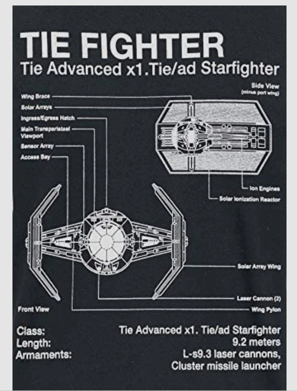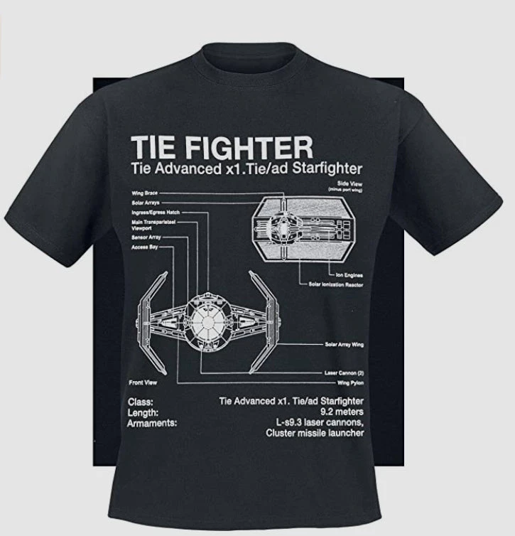 Star Wars T-Shirt Tie Fighter Blueprint with following features: Color: black, Material: 100% cotton, Pattern: plain 100% Cotton Regular