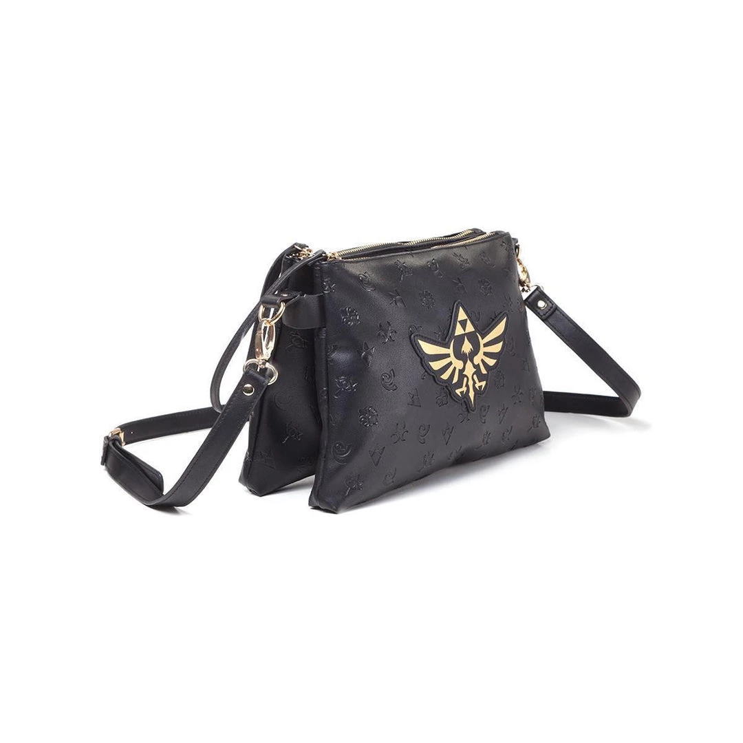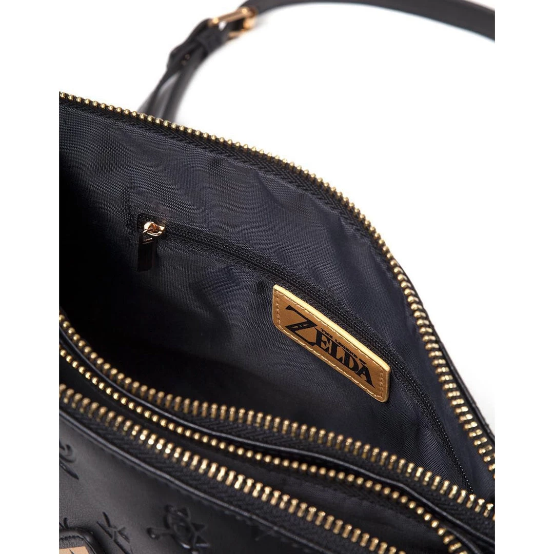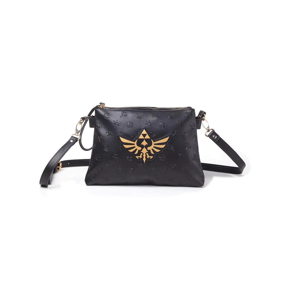 Go forth and venture on your quest with this Legend of Zelda Hyrule Shoulder Bag. Featuring the seal of Hyrule printed in gold, this bag also features a pattern debossed into the 100% vegan leather material. Great for all of life’s adventures.
